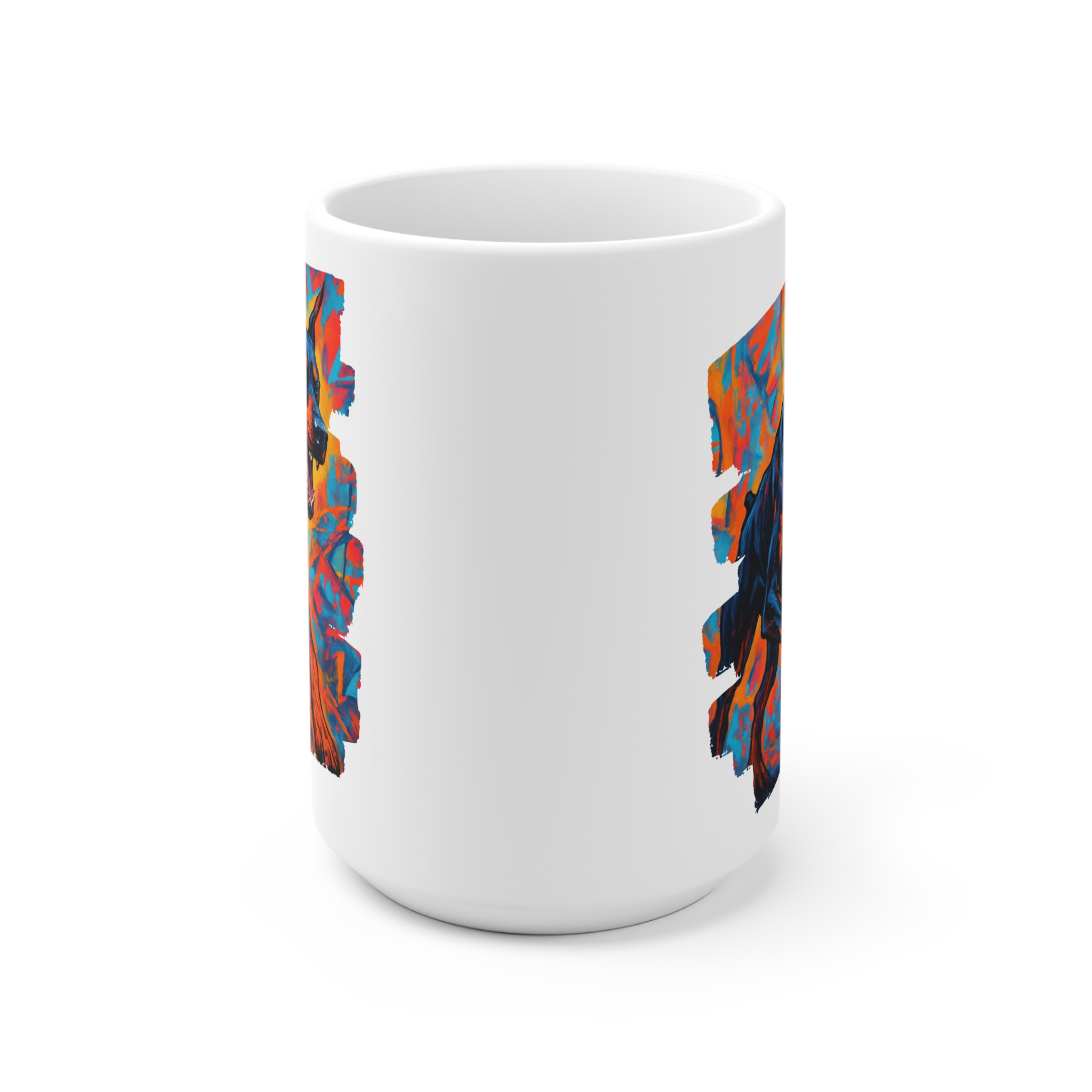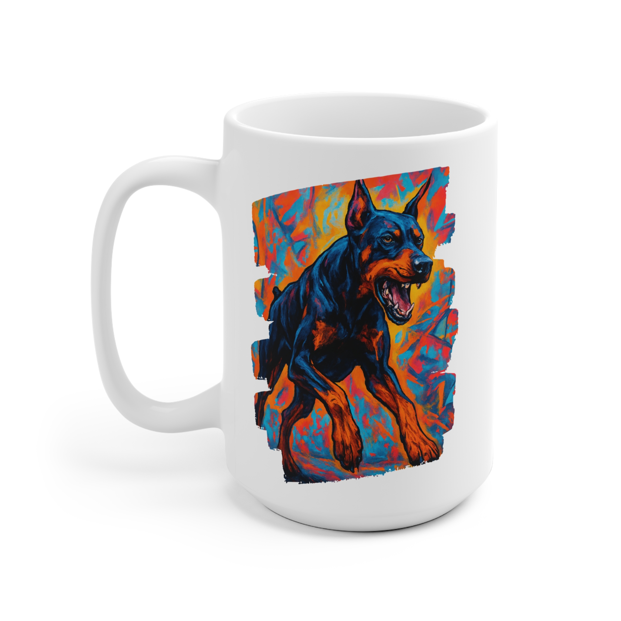 Doberman Graffiti Ceramic Mug — Brave Protector City-Style Coffee Cup